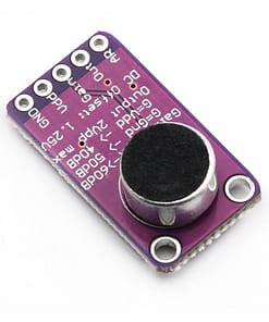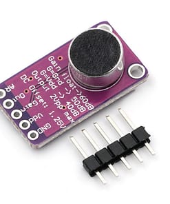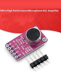 The MAX9814 Microphone Amplifier Module is a high-performance audio amplification solution featuring Automatic Gain Control (AGC) technology for consistent sound level output, regardless of input variations. This makes it ideal for voice recognition, audio recording, and sound-sensing applications in embedded systems.