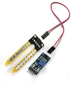 The module features adjustable sensitivity through its onboard blue potentiometer, allowing precise control of moisture detection thresholds. It supports both digital and analog outputs, making it flexible for integration with microcontrollers such as Arduino, ESP32, Raspberry Pi, and other IoT devices.